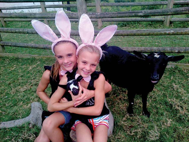 Flag Animal Farm were very excited on Easter Sunday, instead of an Easter Bunny making an appearance, Choc Chips our resident goat gave birth to baby Oreo. Seen here with Sydni and Maxine Parnell from Umhlali.