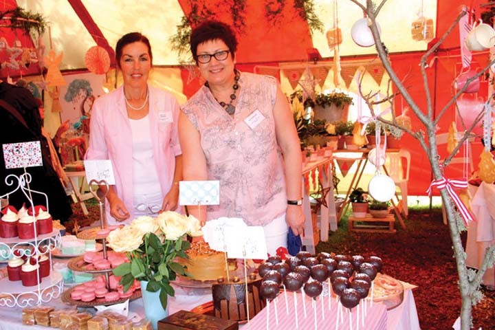 Shelley Hedges and Sue Rowland admiring the beautiful cakes at the Lemon Canary stall.