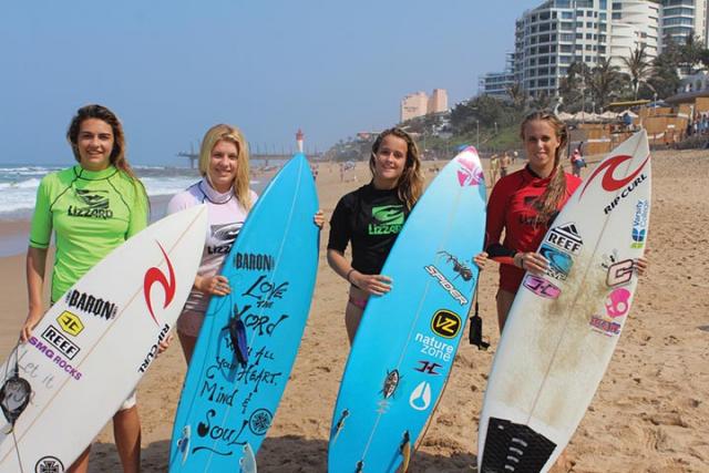 The girls novice division was very special to watch when tiny little surfers braved the tough waves in the Umhlanga bowl. The young girls had caddies helping to push them onto the waves and the winner sent to Lily de GoedeElla Potterton placed second, Saxon Bird third, Samantha Southwood fourth and Maya de Goede fifth