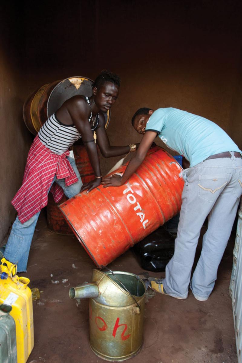 Blood spurts from a deep gash, one of the many that crisscross her naked back. She grunts in wide-eyed pain and then dances forward, tossing her head, spraying him with butter fat and ochre from her thick plaited hair that hangs in a fringe above her face, taunting him to whip her again. Down cracks the whipping stick - more blood.