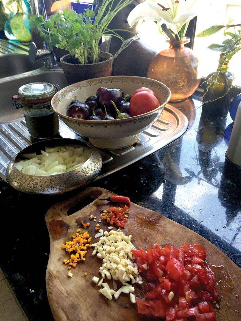 This week I am making a brinjal and potato curry: its simple and delicious.