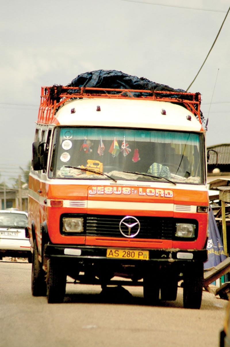 By Land Rover Disco 4, dodging the traffic with the sun still struggling to shine through the Harmattan haze blowing off the Sahara, one is clearly reminded that Ghana is a largely Christian country as can be seen by the delightful use of English signage.