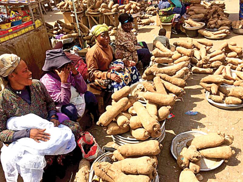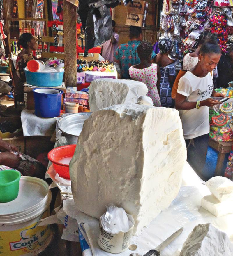 Jolly Ghanaian mamas in wide-brimmed grass hats sell enormous yams and vats of blood-red palm-oil amidst a vast range of fruit, vegetables and giant baskets of black-eyed peas, peanut butter, ginger, chillies, strange medicinal herbs, exotic spices and 'fufu' - the popular, gooey doughy staple made from ground cassava, plantains and yams.