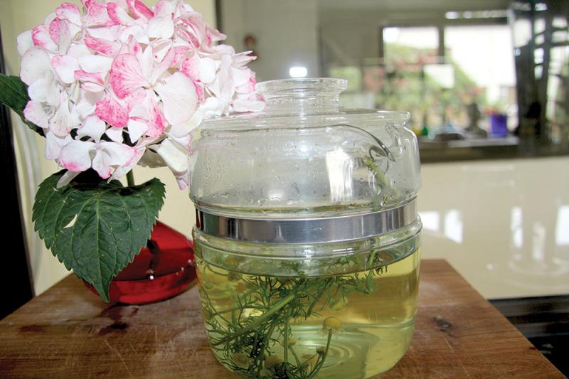 1. Bring the water to a boil in a small saucepan and stir in the roses. Boil the leaves for 40 minutes.