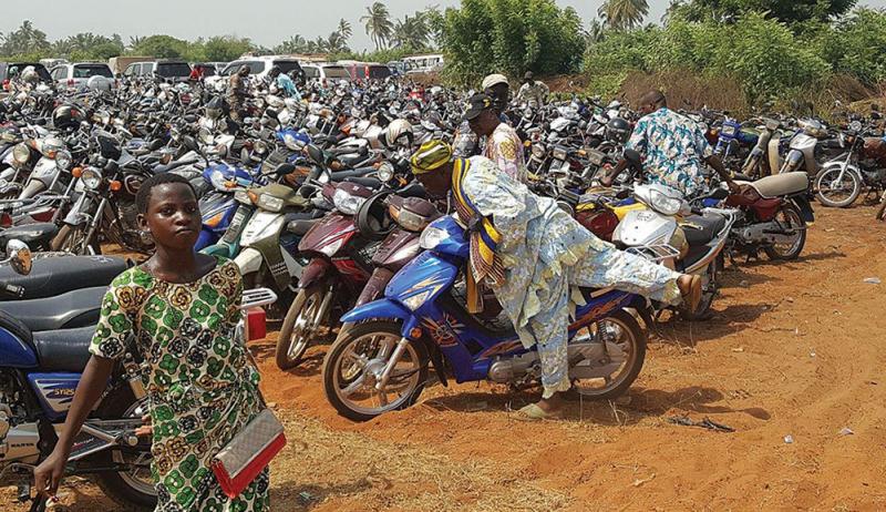 We join the throng of Voodoo devotees, some with tribal scars on their cheeks; women dressed in brightly coloured wraps or all in white - one of the sacred colours of Voodoo - and men in West African-style colourfully patterned tunics and trousers, travelling on foot, overladened motorbikes that struggle in the soft sand, pick-up trucks, busses and cars - army and police directing the chaos - as thousands make their way to the Festival at the Gate of No Return.