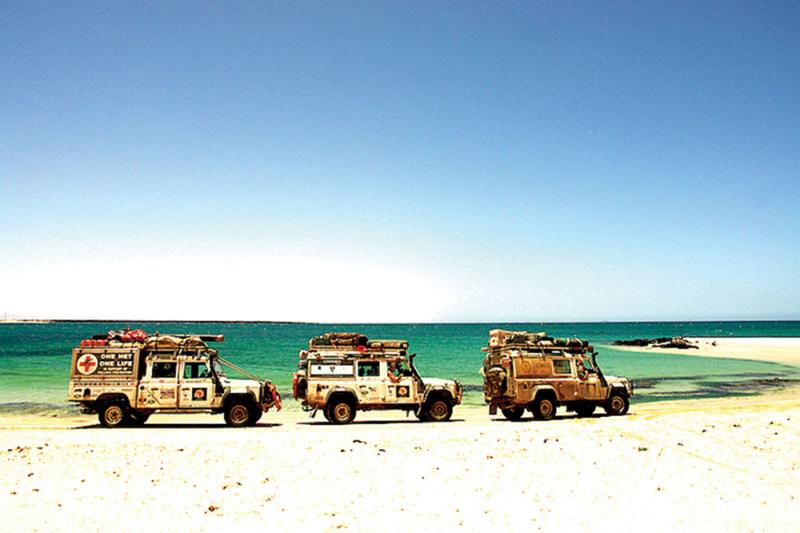 The Zen of Travel is with us again. Our travel permit is handed over; we Land Rover down to the port of Massawa. There's hardly a building that hasn't been damaged by bombs or grenades, virtually destroyed by Ethiopian bombing raids in 1990. Visible out to sea across the Massawa Channel are some of the islands of the Dahlak Archipelago. 'A fisherman's and diver's paradise,' says Ross over the radio, 'we launched the Cape to Cairo ducks and went out there in '94 - it was incredible.'