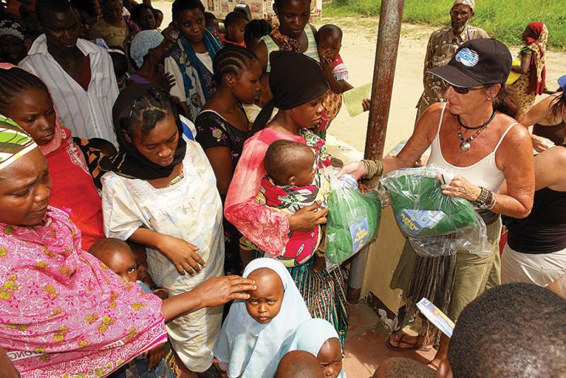 The Land Rover party arrive covered in red mud. Frank gives us one of his Swahili crew to go and relieve Ross and pull in the boat on the high tide. That evening the District Commissioner tells us that the word Bagamoyo means "where you lay down the burden of your heart" which could be the phrase from a out of a slave lament, meaning that although they were to be shipped from the African mainland, their hearts would be left behind in Bagamoyo. Dr. David Livingstone called this trade in human flesh "the open sore of the world." Next day in a humanist turnabout we distribute life saving mosquito nets to mums and babies at the church where Livingstone's sun-dried corpse was carried to before being transported to Zanzibar and Westminster Abbey, where he is buried in the floor of the nave. Old professor Samahani, the local historian attached to the Catholic mission, looks us up and down through his thick spectacles. He's a delightful old man.