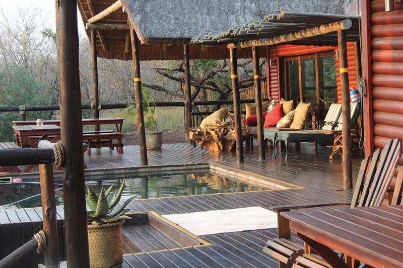 The main lodge has an expansive deck with a plunge pool for those really hot days and although the drought has seen the water recede quite considerably, the Lodge has two boats that can be chartered for Tiger fish expeditions on Lake Jozini. With that the Hippo and crocodile will be filling your view if those ferocious tiger fish have not exhausted you completely.