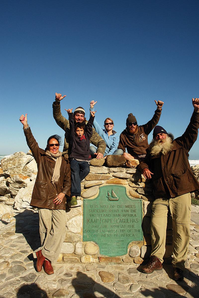 With flashing lights and a wailing siren, a red and yellow National Sea Rescue Land Rover escorts us into Struisbaai. School children sing and wave and at Cape Agulhas where the two oceans meet at the Southernmost point of Mama Africa. Tomorrow is our last day on expedition. Will keep you posted.