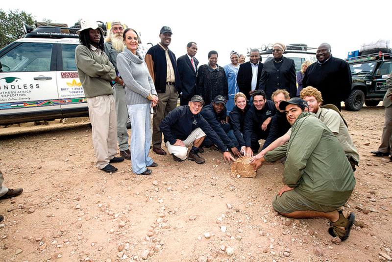 We have a bit of a scrub, put on long pants and smarten up to meet the environmental ministers of Zimbabwe, Botswana and South Africa. They've come to meet the expedition team and sign a three-country accord to rename this TFCA. From now on, it is to be called the Greater Mapungubwe TFCA, in recognition of the ancient, highly sophisticated civilisation of Mapungubwe, which became the largest in the subcontinent, and traded with Arabia, Egypt, India and China.