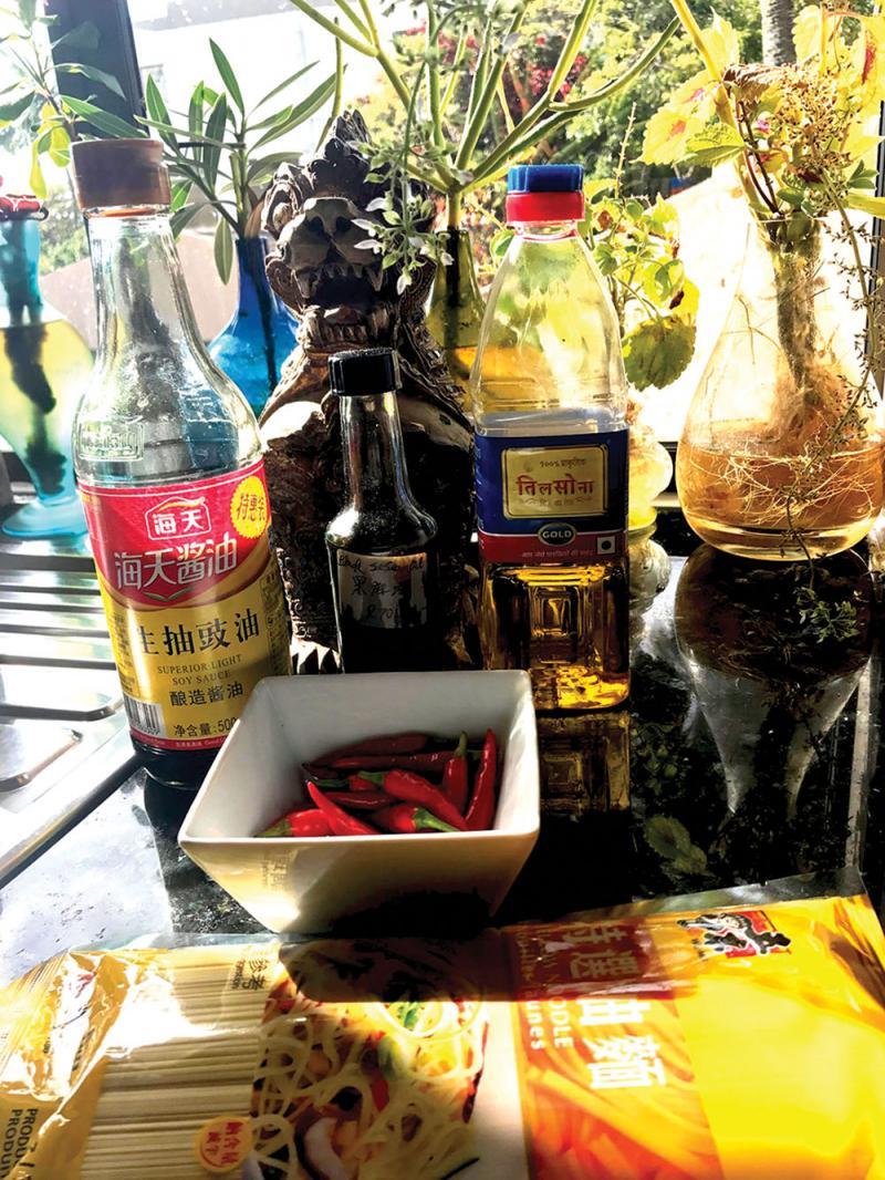Finish off with fresh basil leaves and a drizzle of sesame seed oil