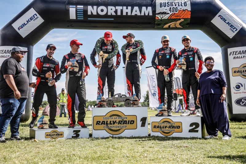 TOYOTA GAZOO Racing South Africa (TGRSA) ended the 2025 SA Rally-Raid Championship in spectacular fashion by taking all three podium positions at the Northam Zondereinde Bushveld 400, while 20-year-old Saood Variawa and his French navigator, Francois Cazalet, clinched both the Overall and Ultimate FIA T1+ Championships after a dramatic and fiercely contested final round. This makes Saood not only the new youngest race winner in the history of the SARRC, but also the youngest champion - a record previously also held by former teammate Henk Lategan.
